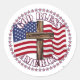 God Bless America and Cross With USA Flag 50 Stars Classic Round Sticker