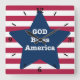 Square Wall Clock, wall art decoration and home furnishing decor accessory printed with God Bless America Red White And Blue lettering and stripes artwork design by TheFabricSeal at Zazzle.com #ZazzleMade TheFabricSeal©️Original.