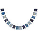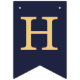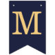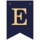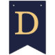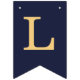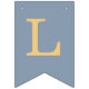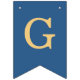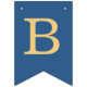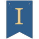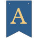 The flags have various nuances of blue: navy blue, classic blue and dusty blue. The letters are golden yellow. The first flag has a cross.