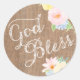 a pretty sticker with burlap / lace effect details available in the large and small circles perfect for Baptisms / Christenings / First Communions / Confirmations. Pastel watercolor flowers in pastel pinks and yellows.