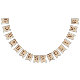 Brown caps on a light brown (faux) wood background, with brown crosses between the words.