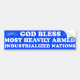 God Bless Most Heavily Armed Industrialised Nations Bumper Sticker: Cynical anti america american parody spoof satire united states whole world politics war wars religion religious christian some certain specific countries country nation pride proud western hate hater fight fighting army gun guns democrat democrats republican republicans liberal conservative compassion