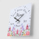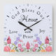 God Bless Our Home Floral Wildflowers Blue Square Wall Clock