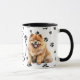A beautiful orange red ChowChow Dog sits on two sides of this mug. The text between the two images says "On the 8th day, God created the CHOWCHOW and called it VERY GOOD". The dog images and the white oval banner containing the text fields are placed on a white background with black paw prints.