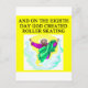 god created roller skating postcard