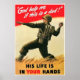 This vintage war poster features an American Soldier tossing a grenade at the enemy. It declares, "God help me if this is a dud! -- His life is in your hands". Celebrate American and WW2 History with this digitally restored vintage war poster product.