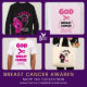 Stylish GOD IS BIGGER THAN BREAST CANCER Christian T-Shirt with CUSTOMIZABLE TEXT, designed for men and women to raise awareness of BREAST CANCER. The wording reads GOD IS BIGGER THAN BREAST CANCER and the awareness ribbon is turned sideways to represent the 'more than' math symbol. Underneath there is a CUSTOMIZABLE Christian Bible text based on Ephesians 3:20—'My God is able to do exceedingly abundantly...' You can personalise these two lines with your own BREAST CANCER awareness message, or with your name or organisation's name. Spread this important message – and do it in style.