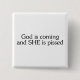 God Is Coming And She Is Pissed 15 Cm Square Badge