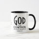 Modern, minimalist CHRISTIAN SCRIPTURE Mug that says GOD IS IN CONTROL AND HE HAS THE FINAL SAY, which is based on Proverbs 16:9. This is a simple design with bold black typography on the front and back, and an encouraging CUSTOMIZABLE message in the middle, which you can personalise with your own message and/or add your name. (Text is centralised horizontally and vertically.) This inspirational quote declares the sovereignty of God, and would make a wonderful gift of encouragement for someone at any time of year.