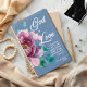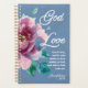 Personalised Christian Planner with Bible Verse. Designed with verse “God is Love” from 1 John set against a deep blue background with elegant delicate pink watercolor flower.