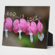 This photo plaque features pretty pink bleeding heart blossoms with the beautiful message that God Is Love. These plaques are high quality with true colors and a glossy finish.
