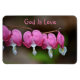 This magnet features pink bleeding heart blossoms with the comforting message that God Is Love.