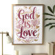 God is Love Pink and Gold Christian Wall Art