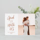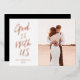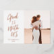 "God is with us" in brushed script in real foil. Edit and customise to change the name, year, and fonts, and foil colour. Customise further to add more text or more photos to the back side. Original illustrated frame of winter foliage.