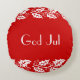 A red and white design with white holly berries. It comes with the text " God Jul," which translates to "Merry Christmas" in Swedish and other Scandinavian languages. You can customise this round pillow now with your own text .