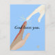 Hands, one human that is multi-racial, one pure energy, reaching, touching, connecting with a spark of energy between them, with God loves you, is printed on postcards.
