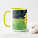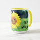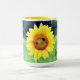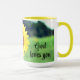 This religious-themed 15-ounce ceramic mug features a unique image of a "happy" Sunflower, courtesy of a well-timed visit by a pair of bees. The pleasant reminder "God loves you" is added in easy-to-read cursive font. The inside of the mug and the handle are glazed in a yellow colour to match the image. The mug is durable and ready for daily use and is both dishwasher & microwave safe. Feel free to contact me through Zazzle if you have questions about this mug or would like help transferring this design to a different-sized mug or different item altogether. I'm happy to help to ensure the image and wording fit correctly!