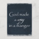 God made a way in a Manger Quote Christmas postcards with vintage black chalkboard background, white antique edges and white typography. See more at Christian Quotes. Link below: