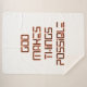 This blanket showcases the words “God Makes Things Possible” in a unique space age print font with black letters orange outline in this dual colour faith based style and theme. This Blanket features a vivid image on one side and the softest Sherpa available on the reverse made from 100% polyester and printed mink with ultra-soft sherpa backing.
