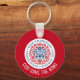 GOD SAVE THE KING Charles III Coronation keychain, in RED, with CUSTOMIZABLE TEXT. The design shows the rose of England, the thistle of Scotland, the daffodil of Wales and the shamrock of Northern Ireland in the beautiful red and blue official floral emblem. The text reads GOD SAVE THE KING. You can PERSONALIZE THIS TEXT with your own wording, eg. add your family/organisation name. The curved wording is CUSTOMIZABLE, so you can ADD YOUR NAME here instead. This King Charles III Coronation keychain would make great commemorative way for you to show your support for this momentous occasion in British royal history. Ideal for favour giveaways at your private and public coronation parties and events. Also in blue.