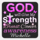 Inspirational breast cancer quote of “GOD Will Give Me Strength” and “Breast Cancer Awareness Faith Hope Love” for breast cancer survivors and fighters who have faith in God.