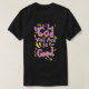 I give wanted to give this a 4 instead of a 5 because these Basic DARK T0shirts run unexpectedly SLIM or Narrow. Which is great if you do not have a potbelly, but I have a paunch. It isn't the shirt's fault that I've got a beer belly. The design and shirt itself is a quality cotton shirt. The color is more of a deep purple, but still a very pretty color. The Basic DARK T-shirts run a bit SLIMMER than the Basic Ts. The neck is a fraction narrower (or seems to be narrower) also. I'm a paunchy middle-aged woman and my neck is 12 inches (31cm) thick and the neckline fell about the same as in the photo of the man, and I had the desire to tug it a bit. So if you're a thick necked man or like loose shirts, be aware these are slimmer shirts. Once I get rid of my lockdown paunch it'll look great. The shirt washed well in cold water with no apparent bleeding. We don't have a dryer, so it hung dry. Did not shrink. Love the colors and the design. The design looks smaller on my shirt than it does on the model on-line. But still, it looks good on the shirt. The printing looks as it does on the model, just the size seems fractionally smaller. Washed garment in cold water, hung dry and design appeared unaffected.