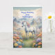 Send wishes for a magical birthday. Wish your goddaughter a happy unicorn birthday. A dreamy image of a white unicorn with a rainbow main standing in a field of flowers. in the background are majestic mountains.The perfect card to give those who love magical and mystical unicorns.