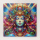 Relaxed puzzling - Goddess Head colourful Hair closed eyes Portrait - Month of May Vibes - This beautiful ai style Design shows a Head of a beautiful Woman with closed relaxed eyes and decorative jewellery crown in her colourful flowing hair, dwelling in a divine celestial Universe. The main colours in this art piece are pink, green, blue, yellow, light blue creamy skin tone.