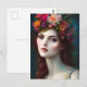 Beautiful postcard features a stunning AI generated image of the Goddess of Love, Aphrodite or Venus in a fine art portrait style with rich colours and a lush floral crown.