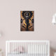 A divine figure embodying the duality between light and darkness. With imposing wings and a golden halo, she raises black circles as bearers of secrets, while flaming leaves emerge from her legs, symbolising rebirth. The palette of blacks and golds creates a mystical and powerful atmosphere, perfect for those seeking a piece that dialogues with mythology and spirituality. Ideal for spaces that value drama and symbolism, this work transforms walls into portals of ancient legends, inspiring admiration and reflection.