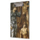 This design features a painting by the British Pre-Raphaelite artist Sir Edward Burne-Jones (1833–1898). It depicts the concept from Mediaeval philosophy known as the Wheel of Fortune (in Latin, "Rota Fortunae"), which symbolises the capricious nature of Fate and its effect on human lives. The wheel belongs to the goddess Fortuna (or Tyche) who spins it at random, changing the positions of those on the wheel: some suffer great misfortune and others gain great windfalls. Male figures are depicted here, as Fortuna turns the Wheel of Fortune and determines the course of their lives. The Wheel of Fortune is similar to that used in watermills. The original artwork was painted by Edward Burne-Jones between 1875 and 1883.