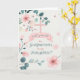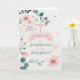 A lovely way to express your wish to that special pair of someones that you would like them to be your baby daughter's Godparents. Blossoms in soft peach and pale pink hues pair with teal green leafy stems.