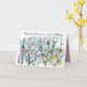 May God bless you on your birthday greeting card decorated with a garden of wildflowers including daisies, heather, clover, and more hand drawn with ink and colored pencils. On the inside is a coordinating shade of mauve and text you can edit to fit your needs.