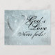 "God's Love Never Fails" Valentine's Day postcard depicts a simple hand drawn heart on frosted glass. The back greeting can be personalised and the card used for many occasions.