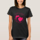 Black & Pink God's Love Never Runs Dry Bible Verse John 4:14 Women's T-Shirt Features An Illustration Of A Flowing River Through Mountains & A Sun.