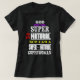 Funny Christian t-shirt with white,yellow and red text on a black t-shirt with words, "God put His Super on my natural and made me a supernatural superwoman. When God's Holy Ghost come live inside us are able to do things outside our natural ability.