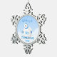 Cute snowman with fuzzy blue mittens, hat and scarf is smiling in a soft snow of pretty snowflakes on this first christmas keepsake snowflake ornament for your godson. Personalise year using the template provided. We specialise in custom-made designs, so contact us if you would like a unique made-to-order layout using this snowman design.