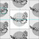 A modern, geometric illustration of a hawk of falcon. The black and white bird is flying in front of a halftone moon.