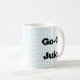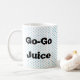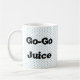 Do you need that cup of coffee to start your day? I know I do! In this fun mug that has a silly saying for coffee as gogo juice. Text placed on a blue polka dot background this is a fun and happy cup.