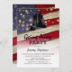 Patriotic military party invitation to celebrate a soldier going away on national service, or to celebrate them coming home. Featuring a red, white and blue flag, marine troop boots, string lights, and a modern party template.