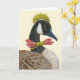 Canada goose wearing a buckeye shell hat and maple seed bow tie