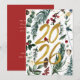 Gold 2025 Festive Christmas Pine Bough Red Floral Holiday Card