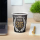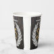 Elegant Wedding Anniversary paper cups with a diamond laurel pattern and a gold nugget number.