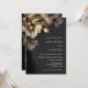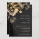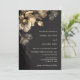 This elegant wedding invitation features gold flowers on a black background. Dark aesthetic wedding invitation with your photo and a scannable qr code for your wedding website on the backside.