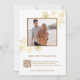 This elegant luxury wedding invitation features AI created 3 dimensional gold flowers and golden line art flowers on a white background. With your photo and a scannable qr code for your wedding website on the backside. Bride and groom names in an elegant handwritten script.