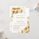 This elegant luxury wedding invitation features AI created 3 dimensional gold flowers and golden line art flowers on a white background. With your photo and a scannable qr code for your wedding website on the backside. Bride and groom names in an elegant handwritten script.
