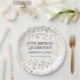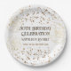 50th Birthday Celebration Party Plates. White and gold design features stylish script and stardust confetti.