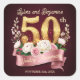 Gold 50th Wedding Anniversary Roses Laurel Wreath Square Sticker