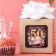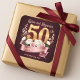 Celebrate half a century of love with this elegant 50th Wedding Anniversary sticker! It features "50th" in stunning golden script, framed by delicate white and pink roses. A flowing rose gold ribbon beautifully displays "Wedding Anniversary" in a complementary font. The deep maroon background ensures the golden accents truly pop. Customise all text – effortlessly change the names and date to personalise your golden milestone! Perfect for favours, invitations, or gifts, this sticker is a dazzling memento of enduring love.