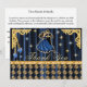 The design features a rich and glamourous theme with dancers in a blue ball dress and smart tuxedo.